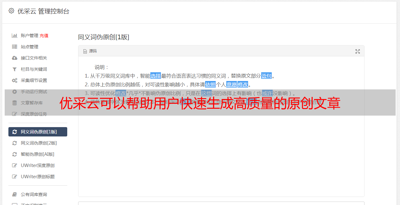 优采云可以帮助用户快速生成高质量的原创文章