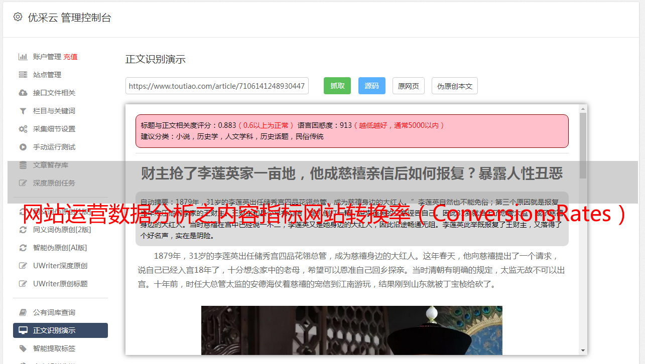 指标含义:衡量网站内容对访问者的吸引力和网站的推广效果