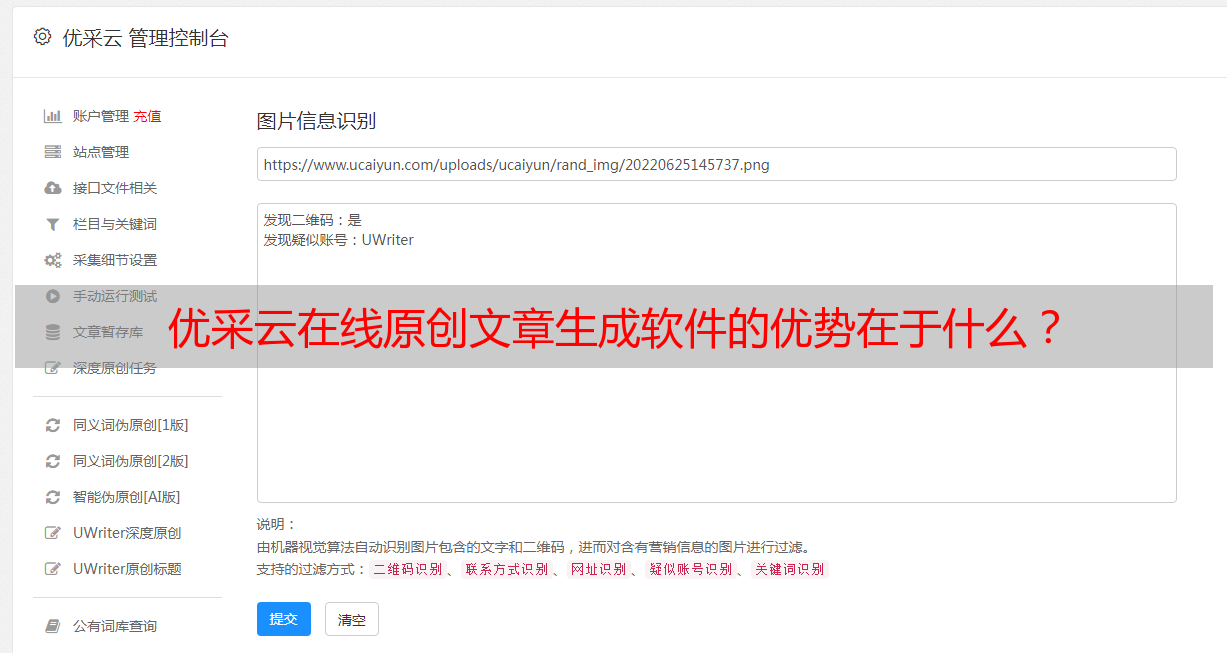 总之,优采云是一款功能强大、使用方便、能够帮助用户快速生成高质量原创文章的在线原创文章生成软件。如果你想要快速发表高质量、具有权威性、SEO 优化后的原创文章,不如试试优采云吧!优采云地址是www.ucaiyun.com,快来体验吧~