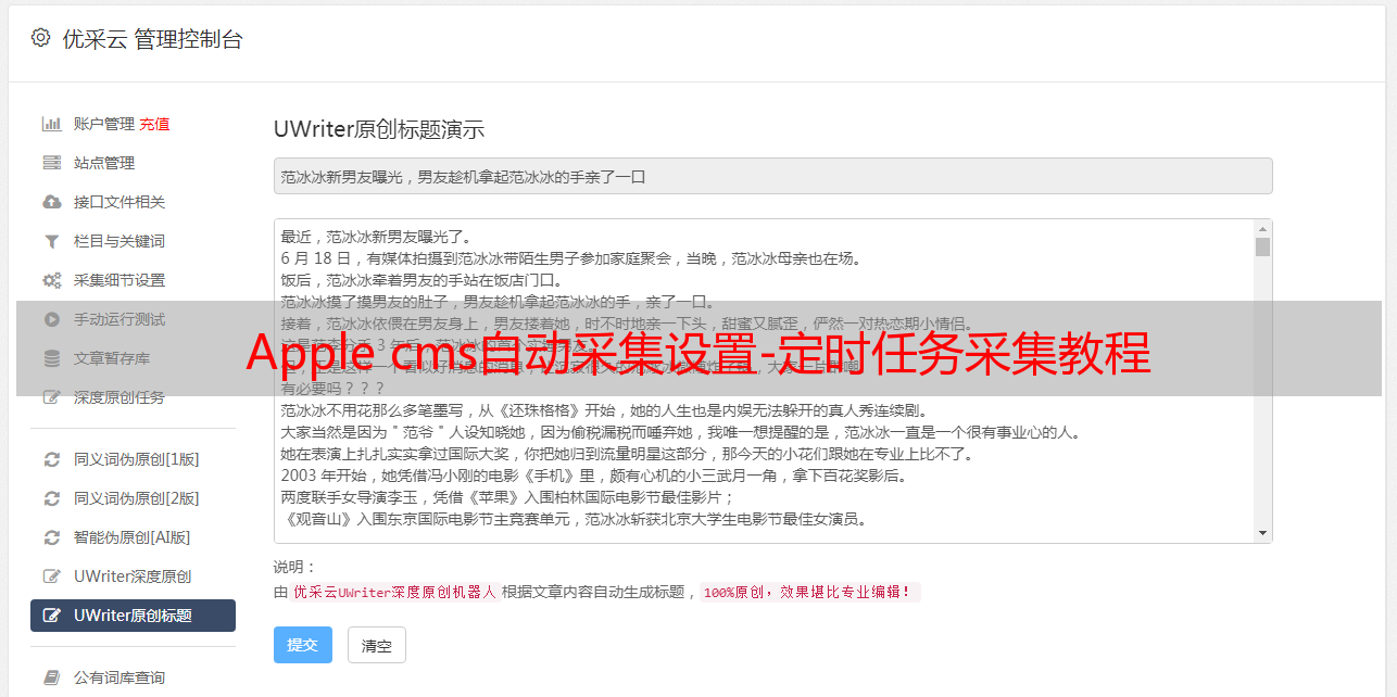 优采云 发布时间: 2020-08-07 16:34许多朋友第一次建立了自己的网站. 在资源采集方面,手动方法既耗时又耗能,并且更新不够及时. 我希望将有一个定期的自动采集任务来帮助补充资源. 您如何逐步设置此任务.