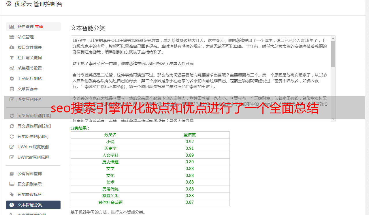 优采云 发布时间: 2021-06-04 00:24seo搜索引擎优化缺点和优点进行了一个全面总结