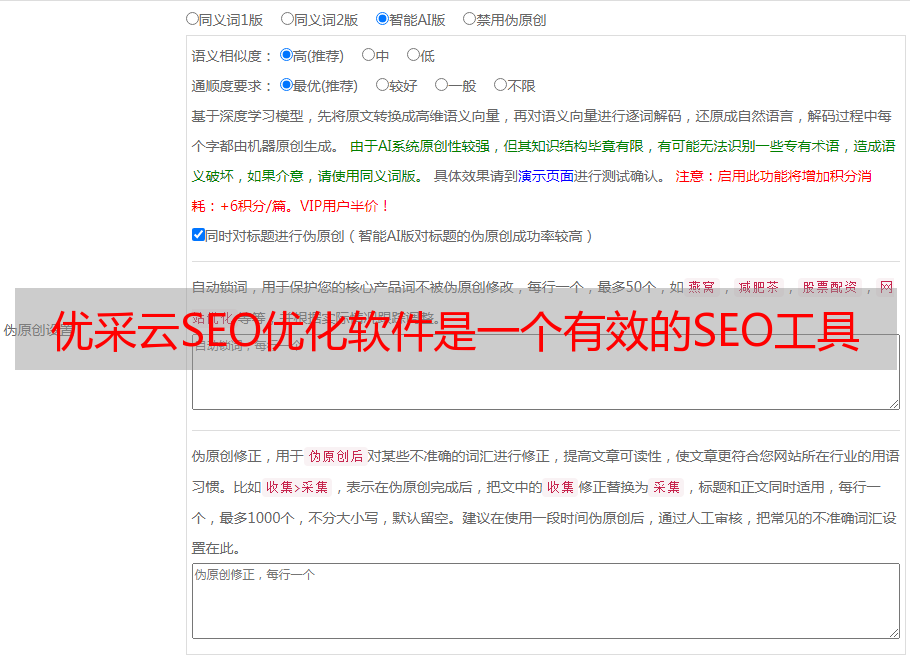 此时,优采云SEO优化软件出现在了用户面前。它是一款面向中小型企业的SEO工具,通过分析、研究和监测,帮助用户有效地实施SEO优化,让用户的网站在各大搜索引擎中获得高排名。