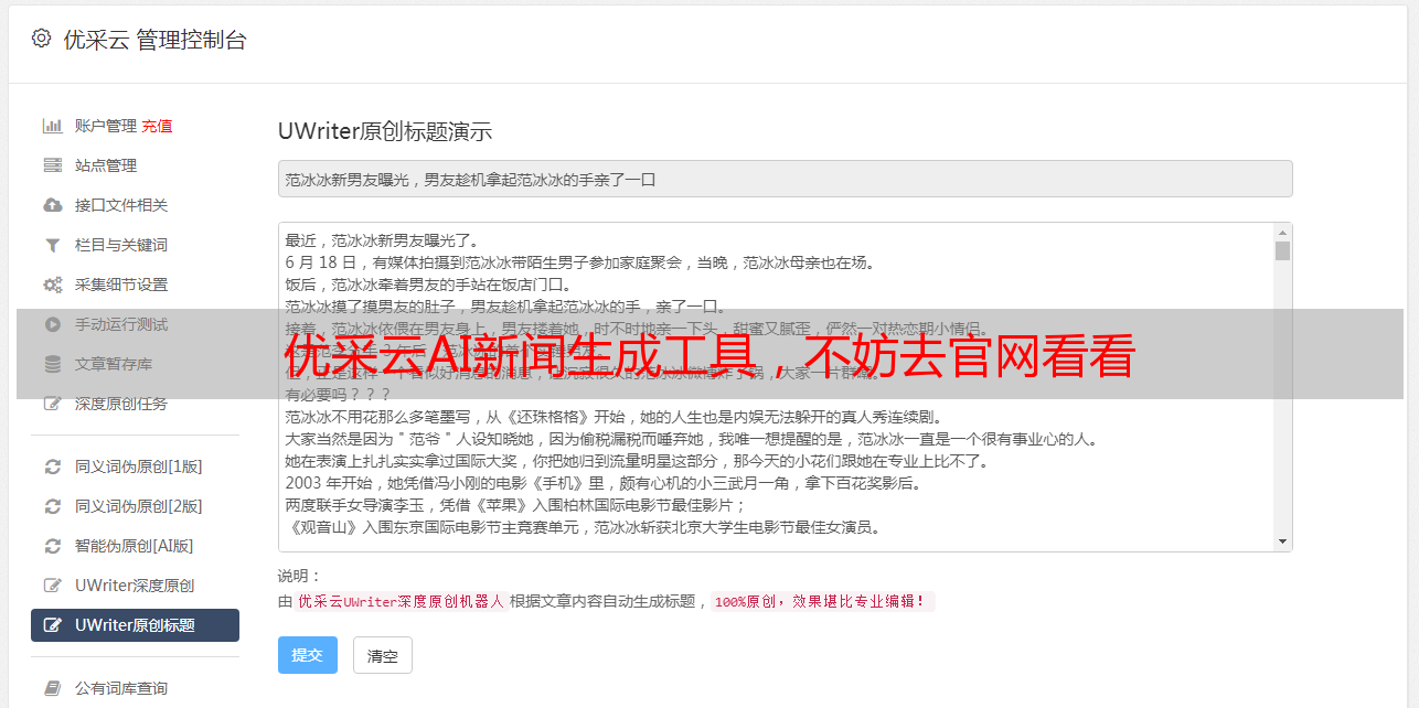 优采云AI新闻生成工具,不妨去官网看看