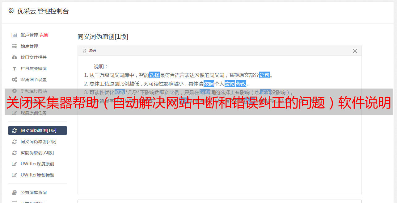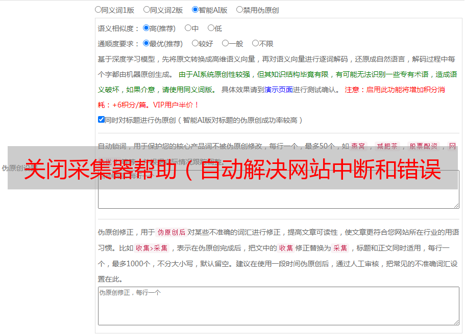 关闭采集器帮助(自动解决网站中断和错误纠正的问题)软件说明
