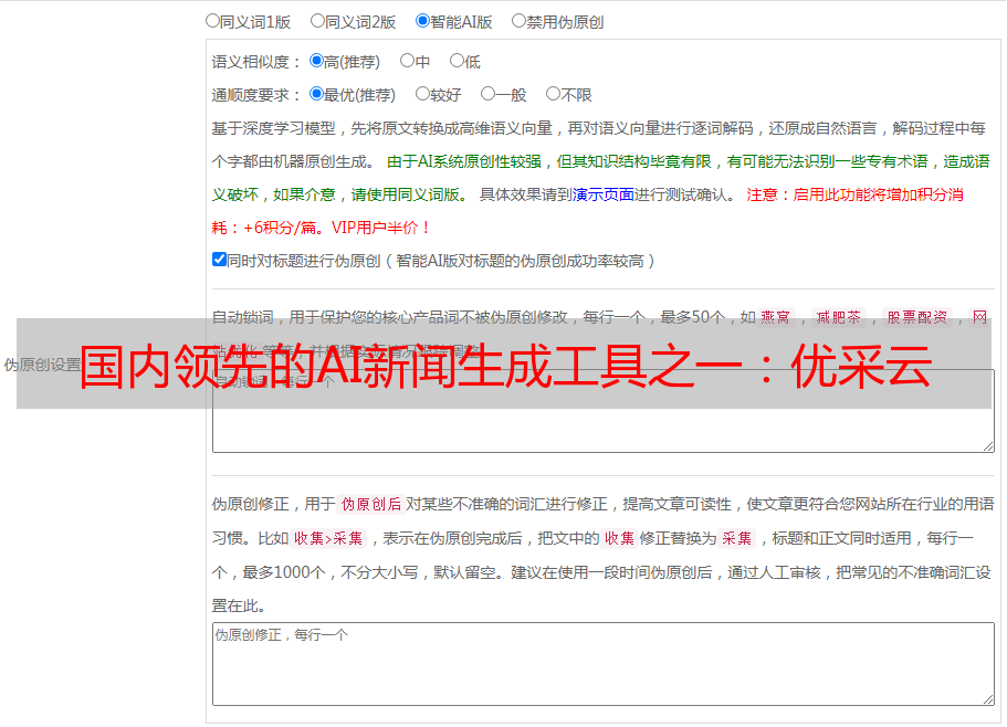 优采云是国内领先的AI新闻生成工具之一,在此领域处于领先地位。优采云的AI新闻生成工具不仅能够根据用户的要求快速生成各种新闻内容,还能够自动化SEO优化,让用户的新闻在搜索引擎中显得更加突出。此外,优采云的AI新闻生成工具还可以自动生成图片、表格、视频等多媒体内容,让用户能够轻松制作出专业水平的新闻发布内容。