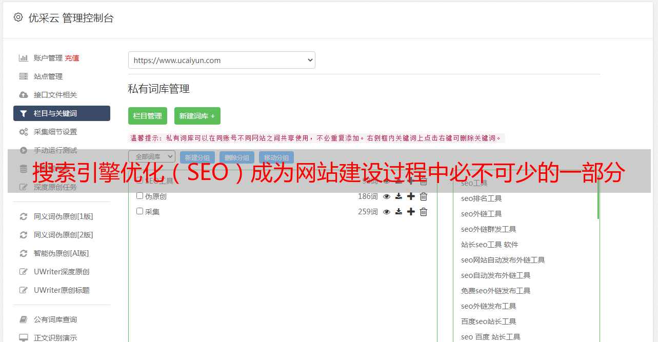 优采云(www.ucaiyun.com)是一家专注于搜索引擎优化的行业领导者。它旨在帮助企业通过SEO方式来获得有效的宣传效果。通过使用他们的SEO服务,可以大大提高企业在搜索引擎上的曝光度,从而将相关流量引导到公司官网上。