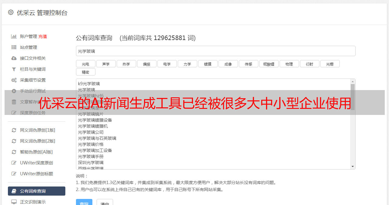 优采云的AI新闻生成工具已经被很多大中小型企业使用