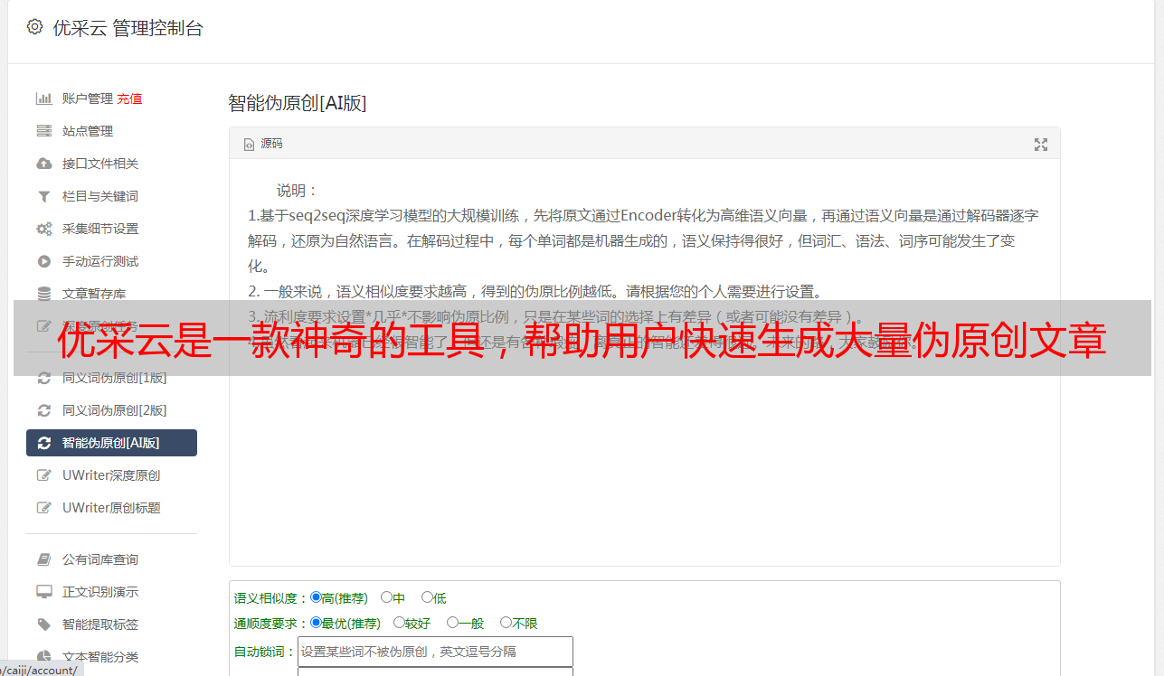 优采云是一款神奇的工具,帮助用户快速生成大量伪原创文章