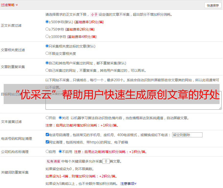 总之,“优采云”是一款十分强大而方便易用的SEO优化工具,能够帮助用户快速生成原创文章并对其进行SEO优化。如果你想要尝试一下“优采云”带来的好处,可以前往其官网www.ucaiyun.com 进行注册使用。