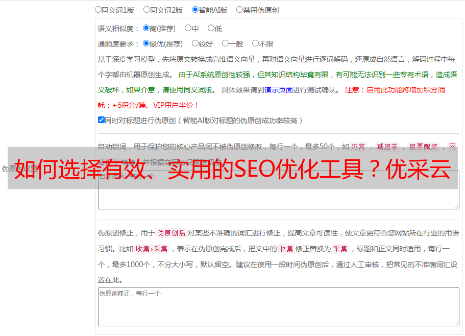 优采云 发布时间: 2023-01-10 19:14当我们需要进行网站优化时,SEO优化是必不可少的一个步骤。SEO优化能够帮助网站获得更好的排名,从而获得更多的流量,提升网站的知名度和可视性。近年来,众多SEO优化工具出现在市场上,但是如何选择一款有效、实用的SEO优化工具呢?
