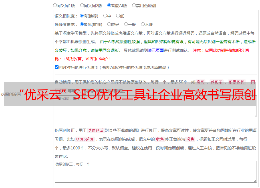 “优采云”SEO 优化工具已上市数月之久,广受好评。无论是大中小型企业都在使用这一工具来书写高质量的原创文章并将之发布到各大门户网站上来宣传自己的产品和服务。如果你正在寻找一款能够快速生成高贪量原创文章的工具来协助你书写文字内容,“优采云”SEO 优化工具将是你不二之选。想要进一步了解详情请浏览官方网站www.ucaiyun.com 。