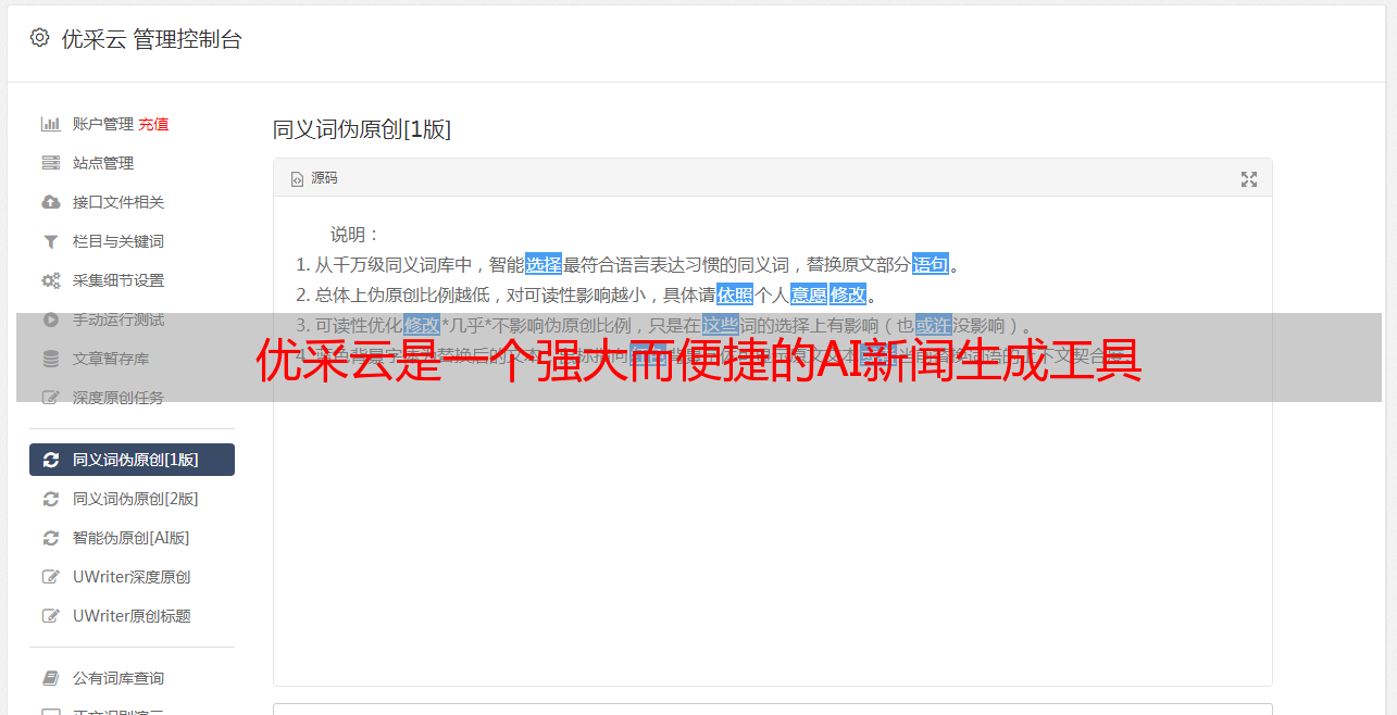 优采云是一个强大而便捷的AI新闻生成工具