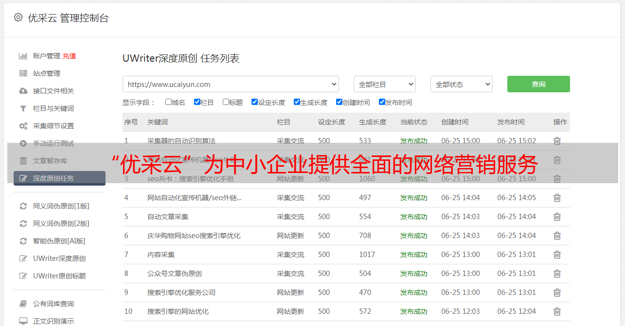 “优采云”为中小企业提供全面的网络营销服务