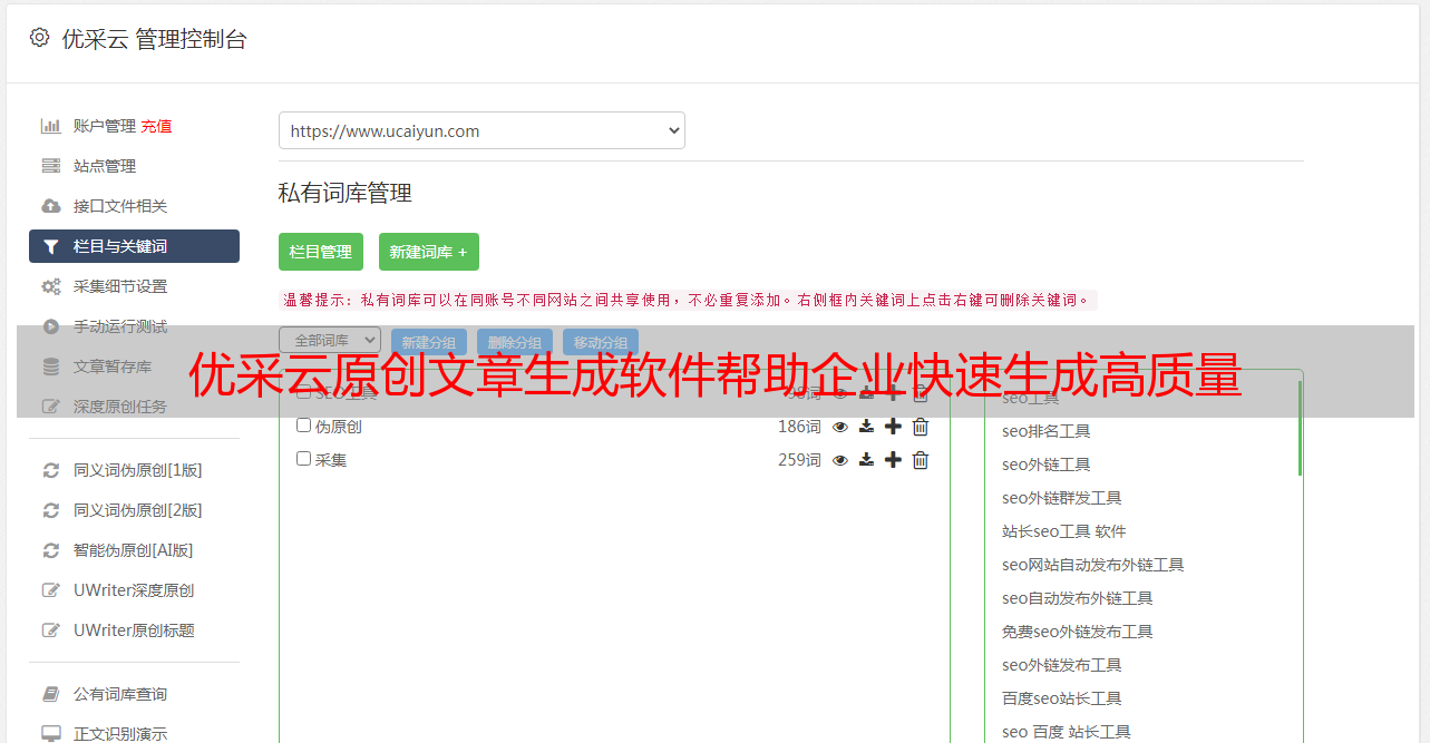 优采云是一家专注于SEO优化服务的公司,它拥有一款强大的原创文章生成软件,可以帮助企业快速生成原创文章,使企业网站在搜索引擎中得到优先排名。