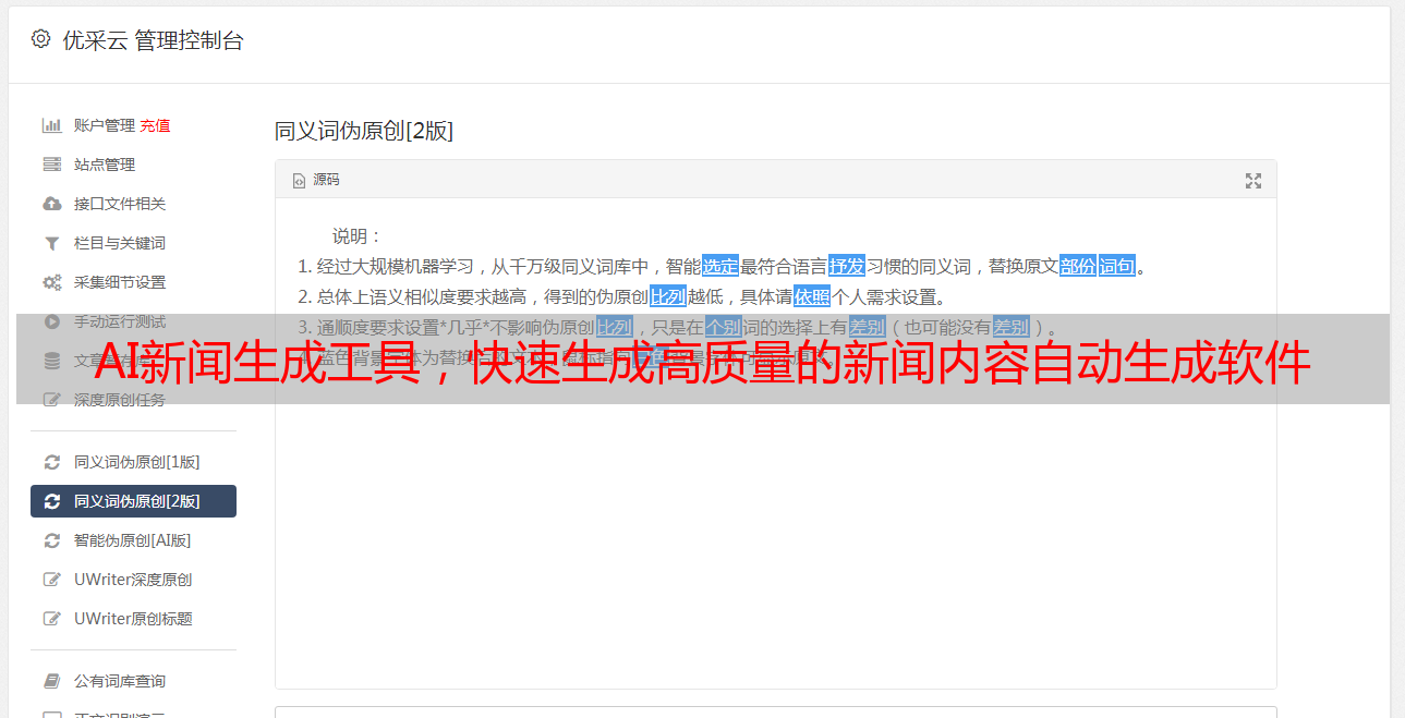 如今,优采云就是一款很好的AI新闻生成工具,它不仅能快速生成高质量的新闻内容,而且还能够帮助企业进行SEO优化。优采云采用了先进的人工智能技术来分析大数据,根据用户特征和行业信息快速生成高质量的新闻内容;同时,它也能够根据用户反馈不断优化内容。此外,优采云还可以根据SEO原理帮助企业增强网站流量、扩大品牌影响力。