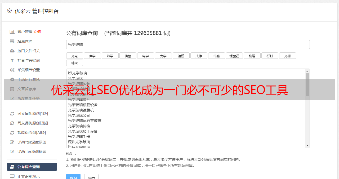 而要实现有效的SEO优化,就必须要依靠一套完善的SEO工具。近年来,优采云作为国内最大的SEO工具平台之一,以其强大的功能和易用性一直受到广大用户的好评。
