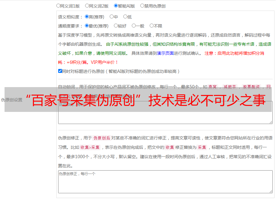 总之,随着信息时代发展带来的各种新兴行业、新思想和新理念不断出现,“百家号采集伪原创”也将成为新时代内容创作中不可或缺的一部分。对于想要在内容行业领屈一呼的人来说,学习并掌握此项技术乃是必不可少之事。