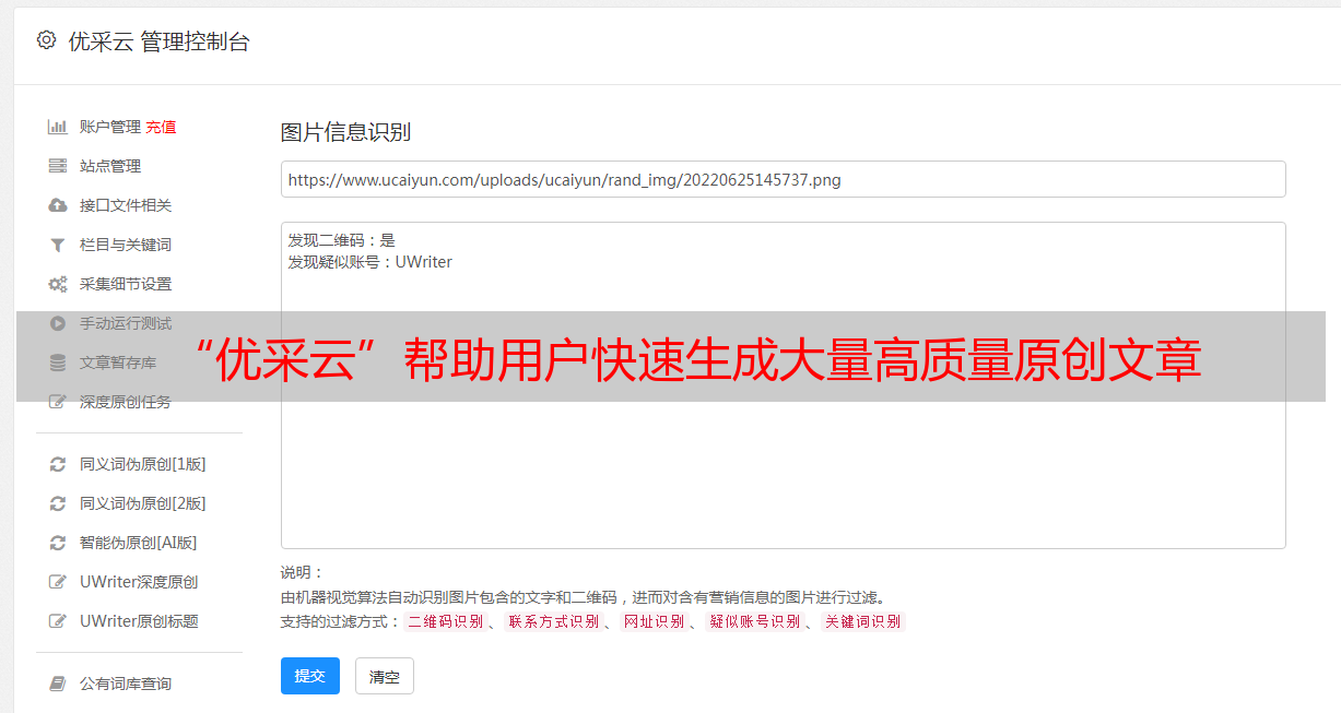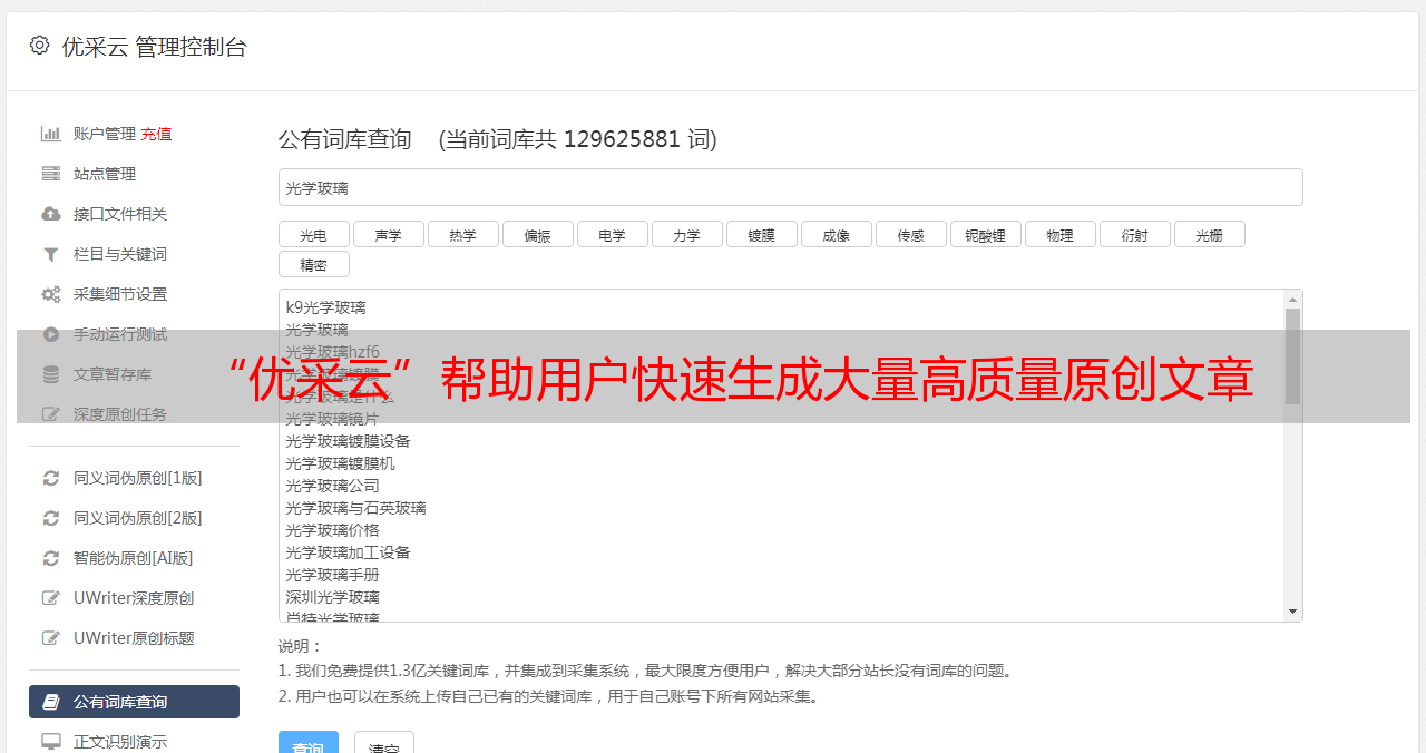 “优采云”帮助用户快速生成大量高质量原创文章