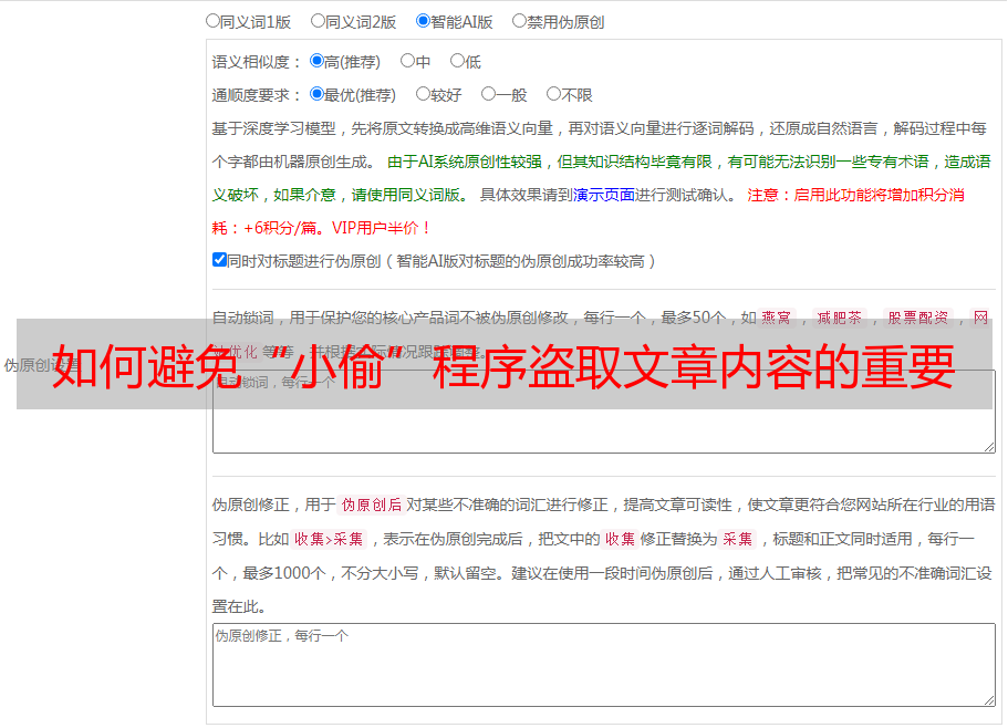 因此,如何避免“小偷”程序盗取文章内容十分重要。有很多方法可以用来避免这一问题,例如使用特定字体、加密文章内容或使用SEO优化工具对文章进行优化。其中最常用的方法之一便是使用SEO优化工具进行优化。