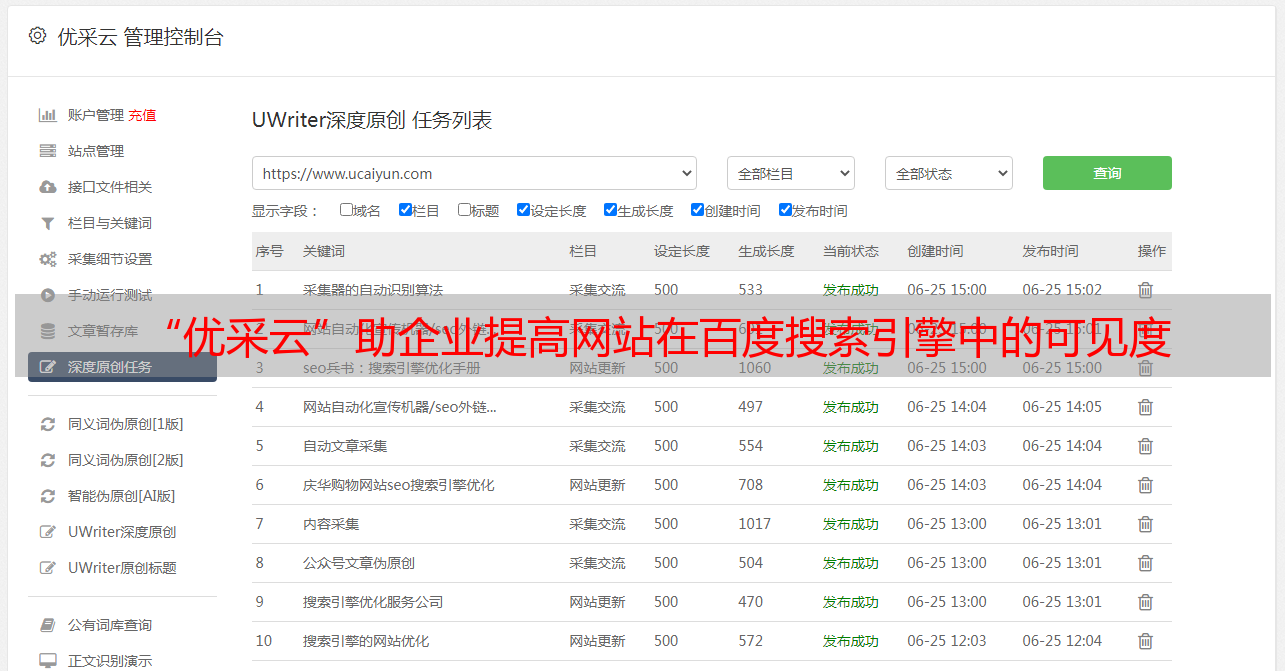 “优采云”助企业提高网站在百度搜索引擎中的可见度