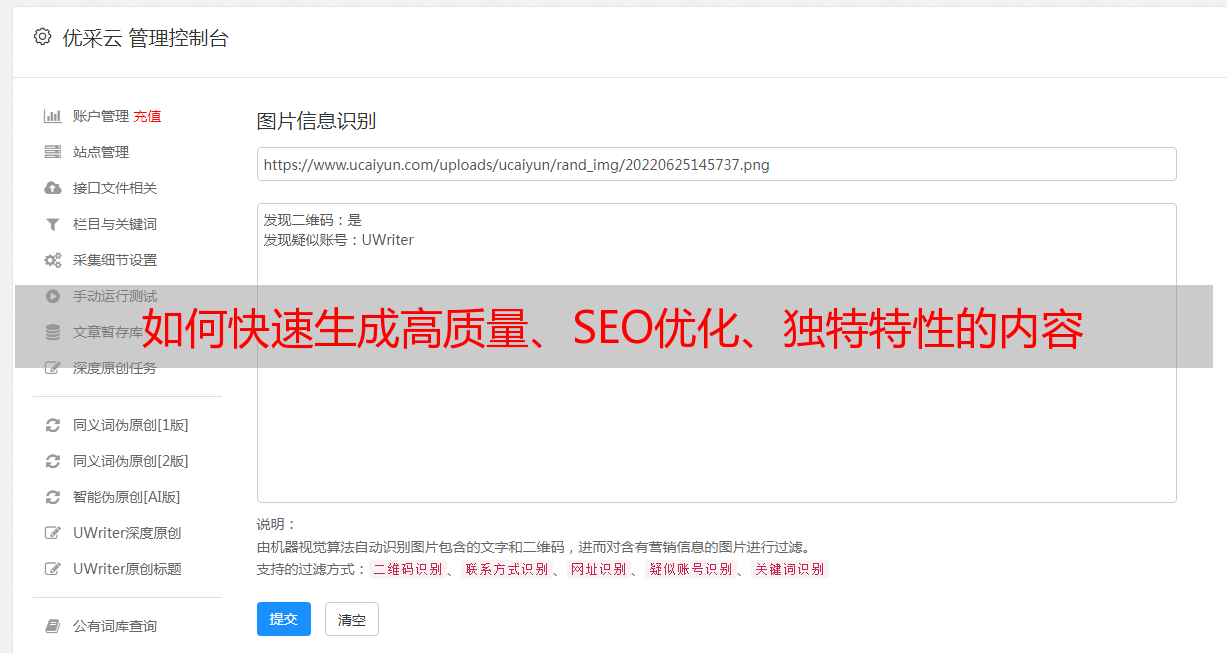 总之,优采云是一款强大而易用的文章采集伪原创软件。它具有强大的功能和易用性、SEO 优化、数据库等功能,能够帮助用户快速生成高质量、SEO 优化、独特特性的内容。如何快速生成高质量、SEO 优化、独特特性的内容就看你如何使用“优采云”文章采集伪原创软件了。想要详细了解“优采云”文章采集伪原创软件请前往官网www.ucaiyun.com 瞧一瞧吧~