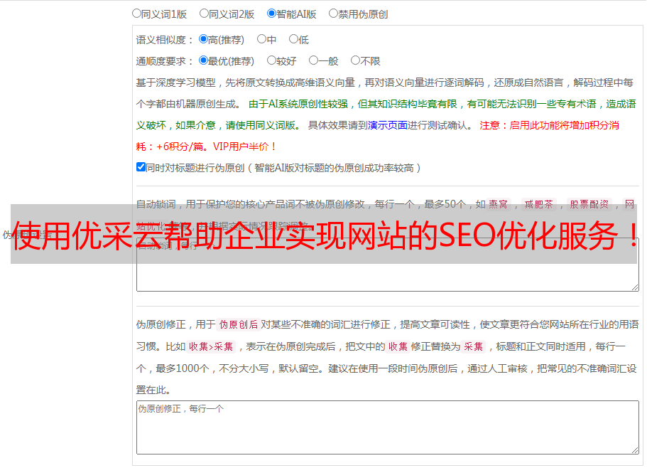 使用优采云帮助企业实现网站的SEO优化服务!