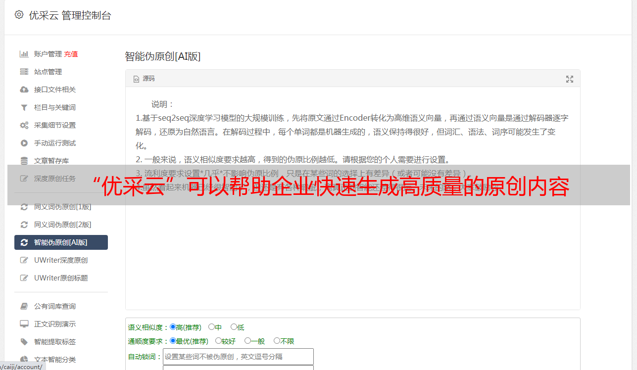“优采云”可以帮助企业快速生成高质量的原创内容