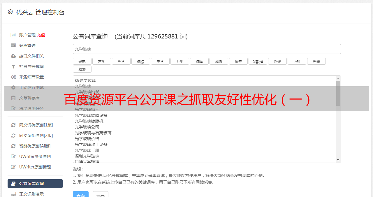 优采云 发布时间: 2021-06-04 20:20百度资源平台公开课之抓取友好性优化(一)
