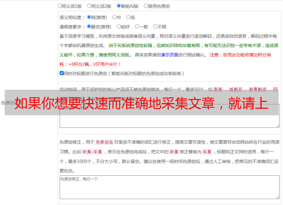 为此,优采云应运而生。优采云是一款面向海外市场的文章采集软件。它能够帮助用户快速、准确地采集文章,并可以根据用户要求对文章进行分类、去重、去噪、整理等处理。此外,它还具有高效的SEO优化功能,能够根据用户需要对文章进行语义分析和关键词优化,使得文章在百度、谷歌中的排名得到显著提升。