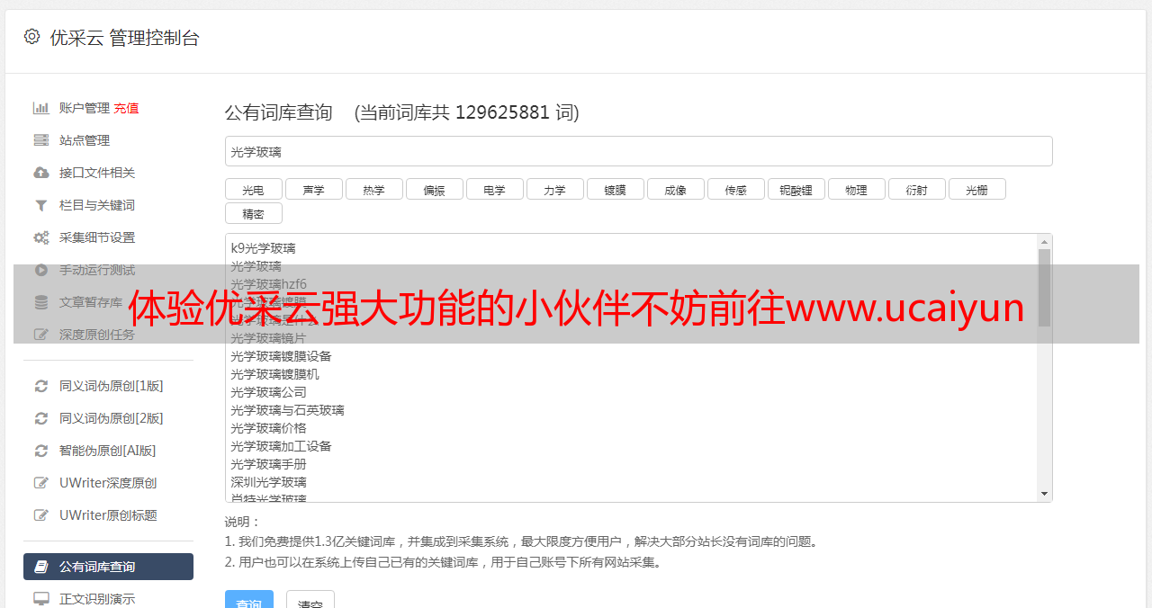 想要体验优采云强大功能的小伙伴不妨前往www.ucaiyun.com来体验一番吧。