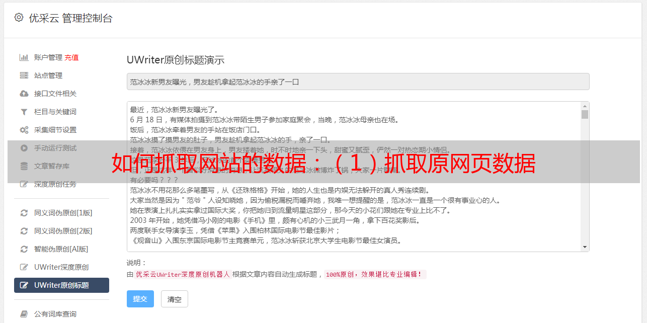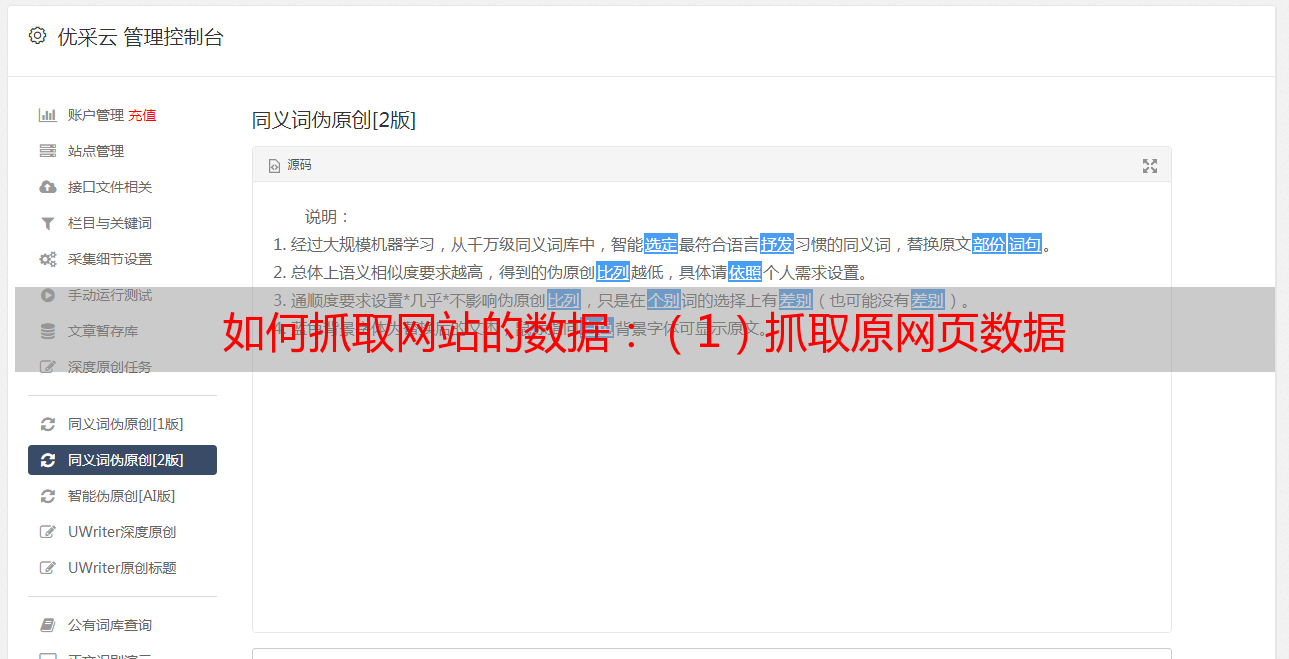 优采云 发布时间: 2021-06-04 22:14如何抓取网站的数据:(1)抓取原网页数据