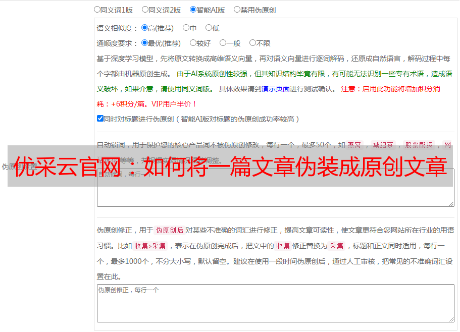 其次,有时候也可以使用一些软件来帮助我们实现伪原创。例如优采云官网www.ucaiyun.com上提供的SEO优化工具中就有一款名为“伪原创助手”的工具,可以对文章进行快速修改,将文章伪装成原创文章。此外,使用此工具时还可以选择不同风格的语言来修改文章,例如正式风格、幽默风格、流行风格等。