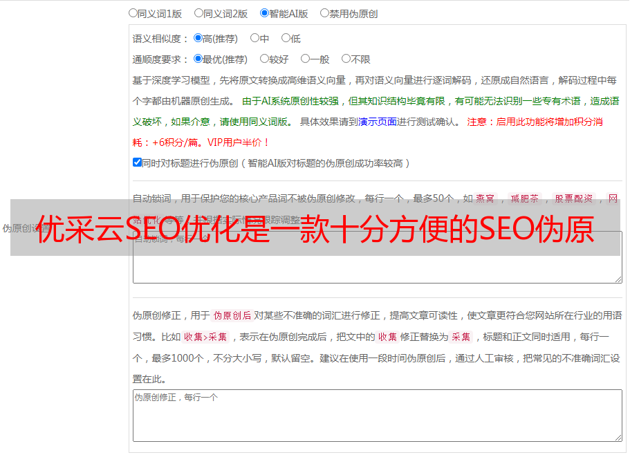 优采云SEO优化是一款十分方便的SEO伪原创在线工具