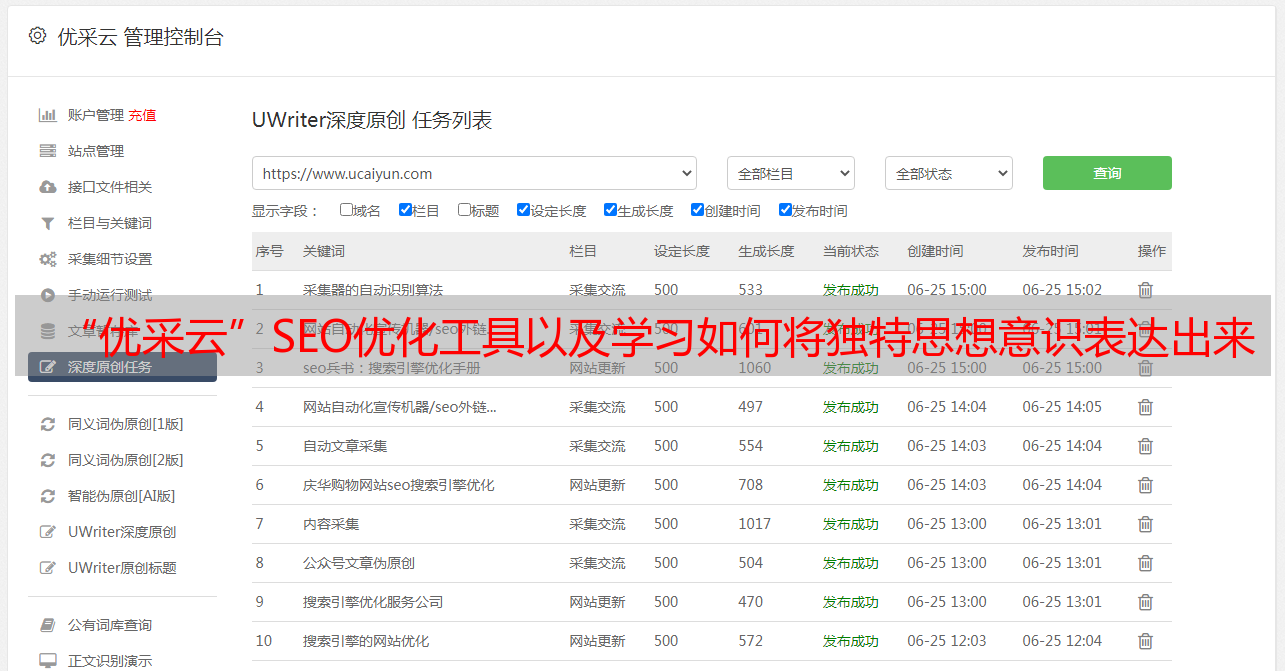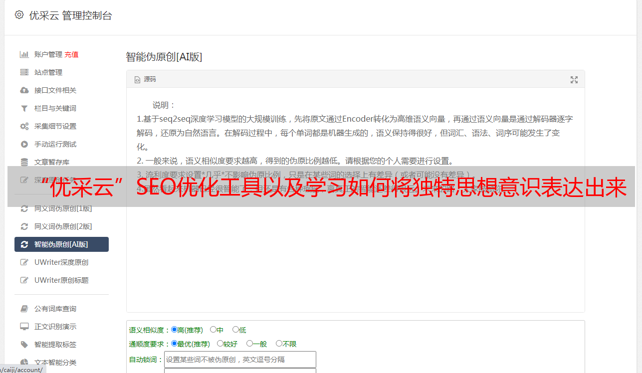 “优采云”SEO优化工具以及学习如何将独特思想意识表达出来