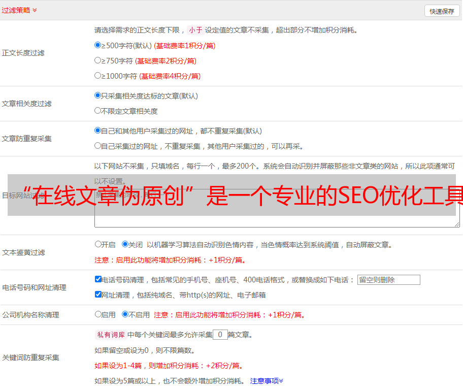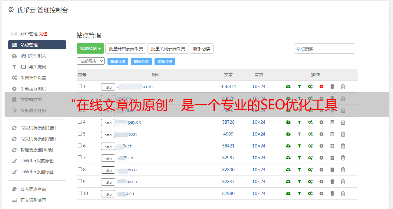 “在线文章伪原创”是一项利用软件技术生成可读性较高的内容,具有原创性又不易被搜索引擎识别出来的服务。目前,市面上的“在线文章伪原创”软件已经很多,其中尤以优采云为代表。这是一款功能强大的SEO优化工具,它不仅能够帮助用户生成高质量的内容,还能够根据用户提供的关键字,自动生成SEO友好的内容。此外,它还能够帮助用户快速生成图片、语音和视频内容,从而帮助用户提升文章内容。