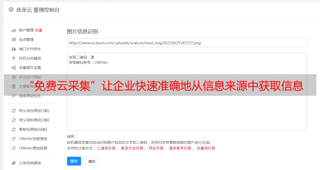 优采云是一款全新的免费云采集工具,它通过将大数据、人工智能和大数据分析相结合,形成一个强大的云端信息采集平台。优采云可以帮助企业快速准确地从各种信息来源中采集数据,使企业及时获得最新的信息。