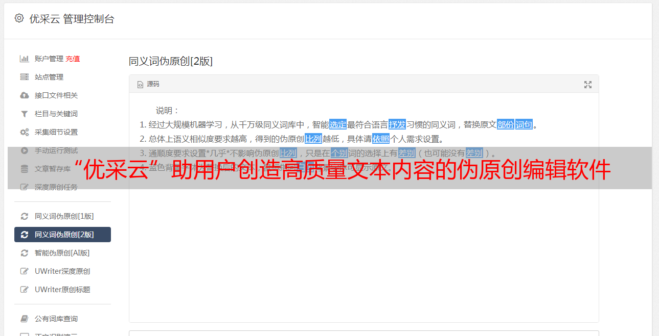 “优采云”助用户创造高质量文本内容的伪原创编辑软件