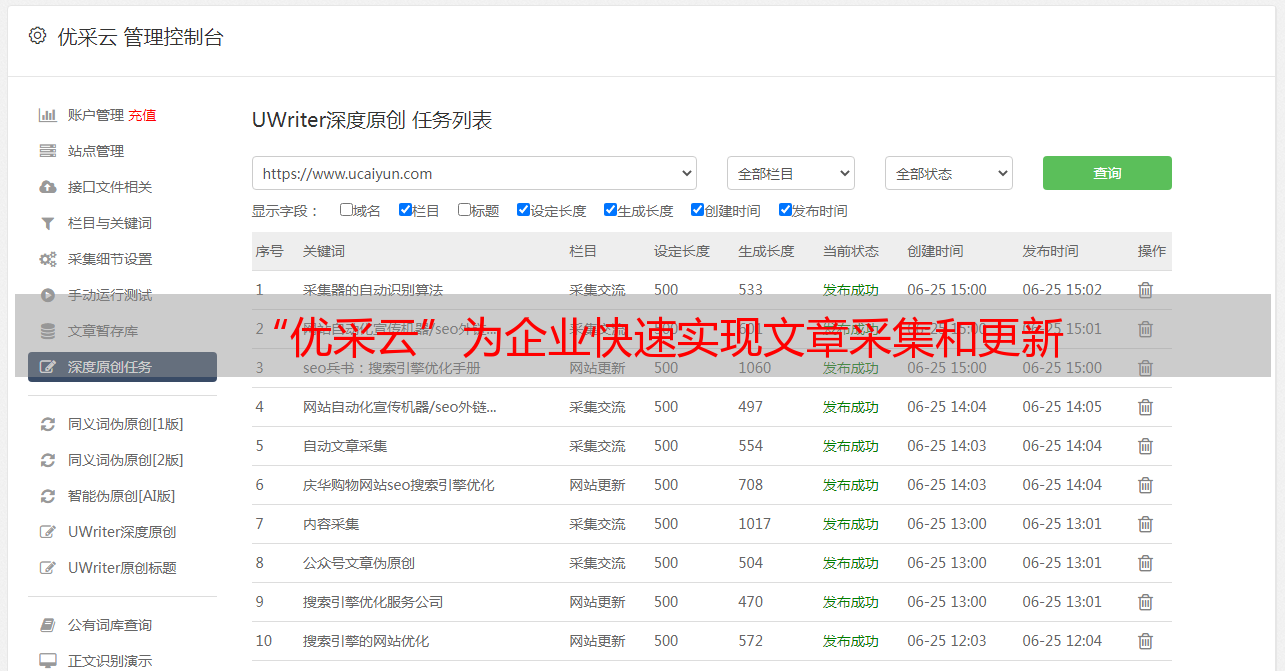 “优采云”为企业快速实现文章采集和更新