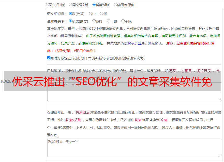 优采云 发布时间: 2023-01-16 14:38伴随着互联网的发展,人们的阅读习惯也发生了巨大变化,从报纸、杂志到网络新闻、微博、微信。文章采集软件成为一种流行的工具,它可以有效地帮助人们收集和分析大量信息。为此,优采云公司推出了一款名为“SEO优化”的文章采集软件免费版。