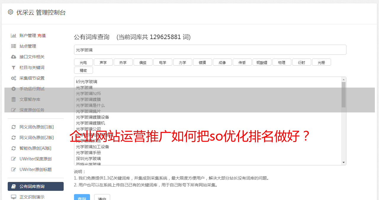 对于优化,其实是主动的诉求。产品优化是针对企业的有效营销手段。产品曝光促进企业品牌建设。好的优化可以很快让企业看到好的效果,优化品牌本身的建立。助力公司网络营销,帮助调整so与搜索引擎的各种关系,不断加强优化,树立公益互联网环保品牌。这让更多人了解搜索引擎优化和搜索引擎营销。