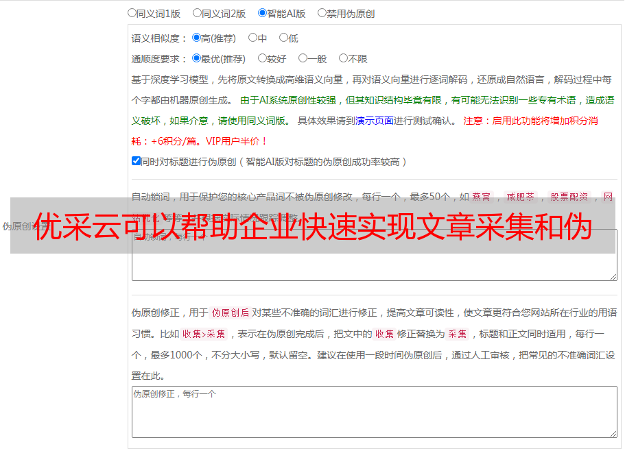 优采云可以帮助企业快速实现文章采集和伪原创