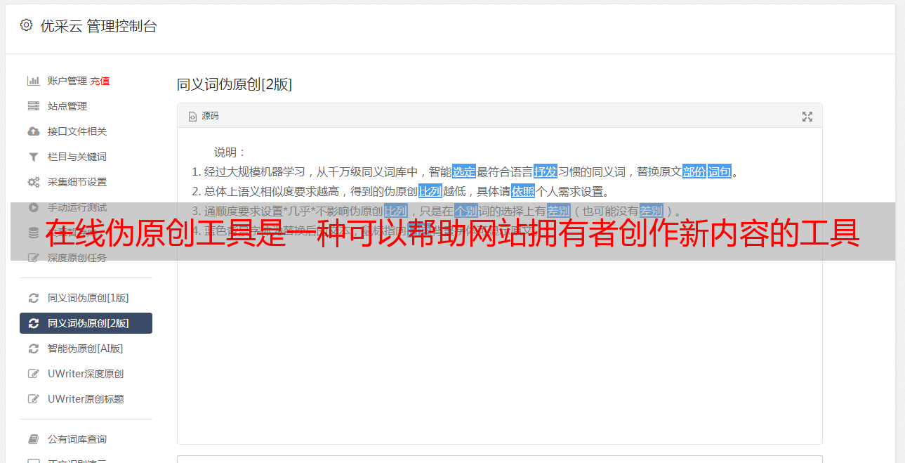 在线伪原创工具是一种可以帮助网站拥有者创作新内容的工具