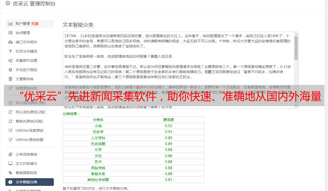 “优采云”先进新闻采集软件,助你快速、准确地从*敏*感*词*海量数字化信息中获取