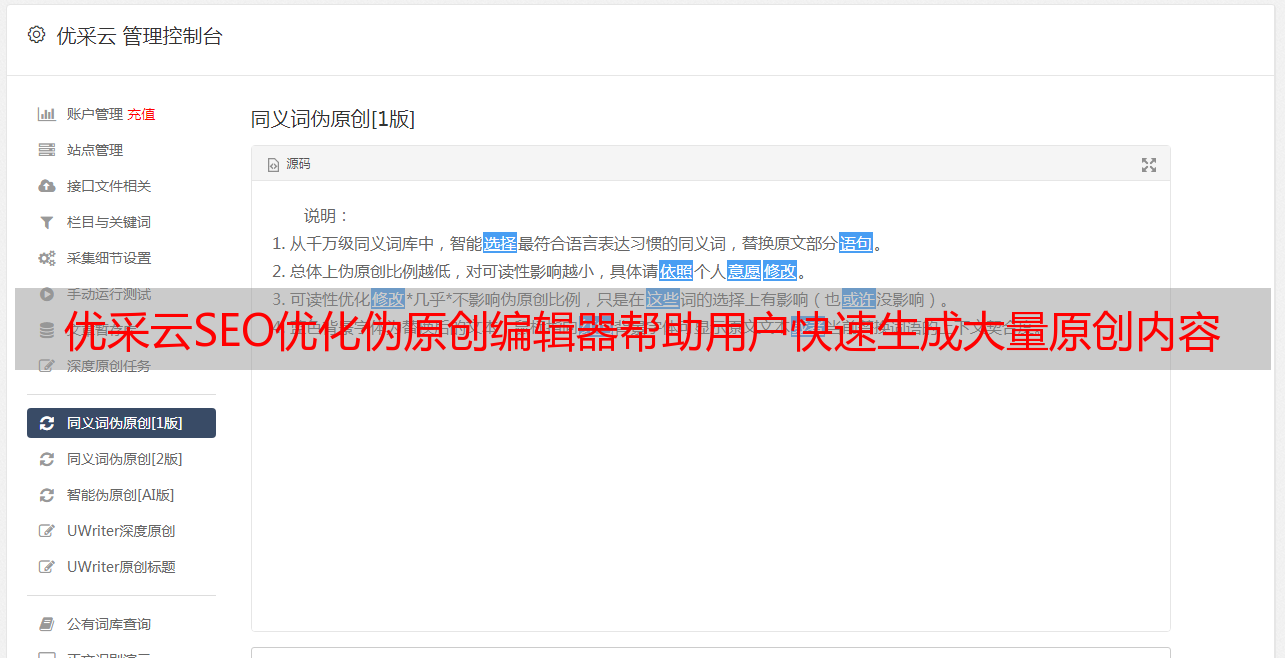 优采云SEO优化伪原创编辑器帮助用户快速生成大量原创内容