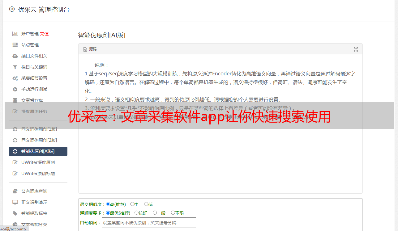 最后,优采云还具备全面的数据分析功能,能够对所采集到的文章内容进行详尽分析,并提供相应的建议和分析意见。这样便于用户对采集到的文章内容进行后期修正和优化。