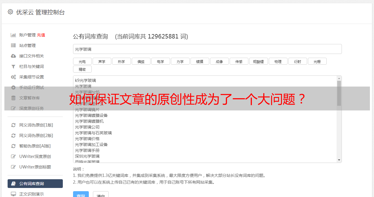 优采云 发布时间: 2023-01-18 03:25随着网络信息的快速发展,文章内容的创作也受到了很多人的青睐,但是当大家都在创作文章时,如何保证文章的原创性成为了一个大问题。这个时候就需要一款功能强大、实用性强的伪原创编辑器来帮助大家解决这个问题。其中最佳选择就是优采云SEO优化。