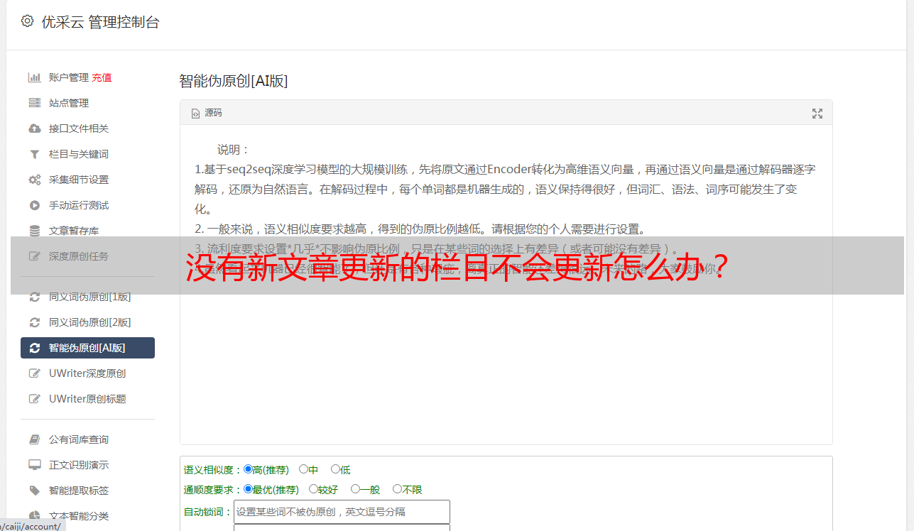 优采云 发布时间: 2021-06-05 05:00没有新文章更新的栏目不会更新怎么办?