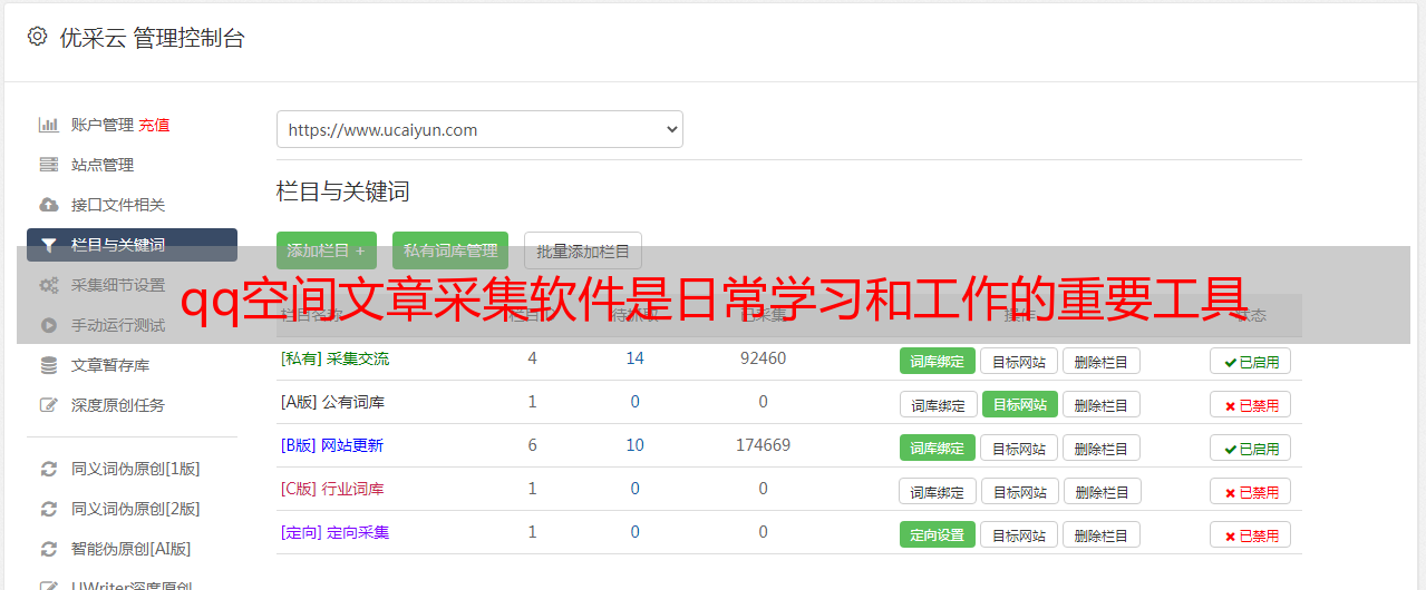 总之,qq空间文章采集软件是日常学习和工作中不可或缺的工具之一,特别是对那些喜欢在qq上浏览新鲜内容的人而言尤为重要。而优采云正是一款强大而好用的qq空间文章采集软件,如果你想尝试一下它,不妨前往它的官方网站www.ucaiyun.com来感受一番吧。