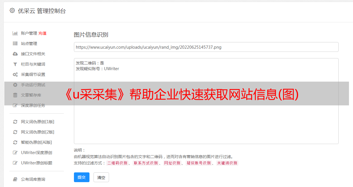 总之,u采采集不仅能够帮助企业快速获取网站信息,而且还能够帮助SEO优化。如想了解有关u采采集的相关信息,请登录其官方网站www.ucaiyun.com 进行了解。