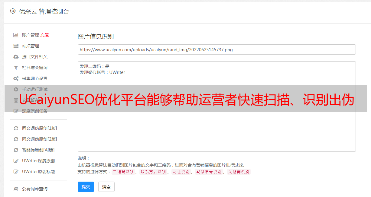 UCaiyunSEO优化平台能够帮助运营者快速扫描、识别出伪原创内容